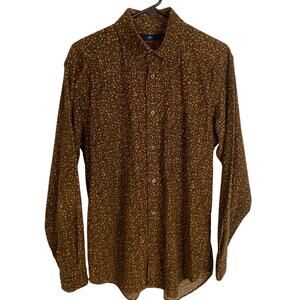 Ermenegildo Zegna Sport Shirt Mens M Brown Corduroy Floral Long Sleeve Button Up
