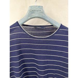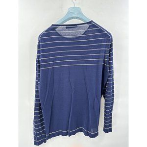 Lightweight pull-over stripped navy blue see-throughout sweater. Awesome for summer, fall or to layers in winter.