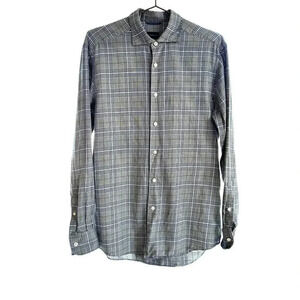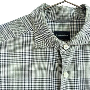 Keywords: Ermenegildo Zegna shirt, plaid button-up, size large, business casual, high-end menswear, preppy style, sophisticated fashion, luxury shirt, tailored fit, boardroom attire, networking events, Italian fashion