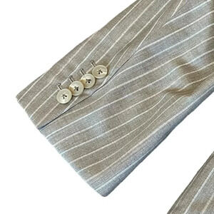 Ermenegildo Zegna Taupe White Pinstripe Blazer Jacket Suit Sport Caoat Size 54R