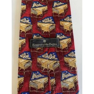 Ermenegildo Zegna Tie 100% Silk Necktie Grand Piano Music Red Yellow 56.…