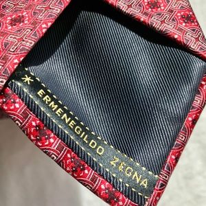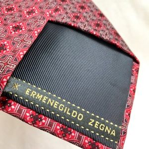 New $65 Ermenegildo Zegna Tie CARDINAL Red pattern Silk Italy RARE. NWOT