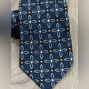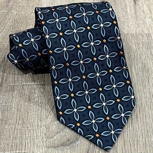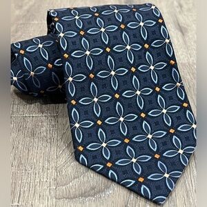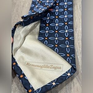 Ermenegildo Zegna Tie Made in Italy 100% Silk Geometric Sunburst Navy Pop EUC