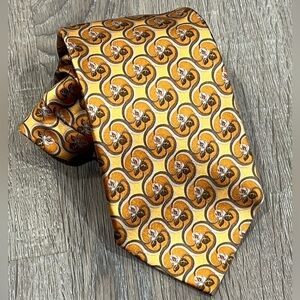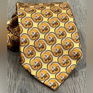 Ermenegildo Zegna Tie Yellow Floral Pattern Geometric 100% Silk Made in Italy
