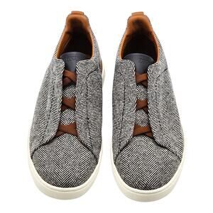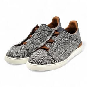 Step into luxury with the Ermenegildo Zegna Triple Stitch sneakers, crafted in Italy with a refined grey herringbone wool upper and smooth leather accents. Designed for both comfort and sophistication, these slip-ons blend casual ease with Zegna’s signature elegance, making them ideal for smart-casual wear.