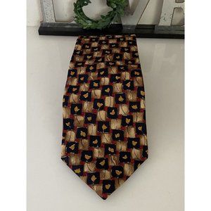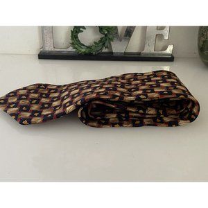 Vintage Rare Ermenegildo Zegna Italian silk tie in a geometric pattern abstract flowers or Tulips? Abstract geometric yellow gold flowers on a black square. Or just a geometric pattern that can be interpreted as flowers. High end designer tie made in Italy. widest: 3.5", length:58" All Measurements are approximate and taken flat. Excellent Pre Owned Condition!!!