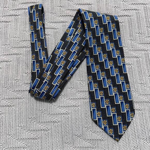 Ermenegildo Zegna blue geometric silk tie. Previously loved and in excellent condition. Non smoking and pet free house.