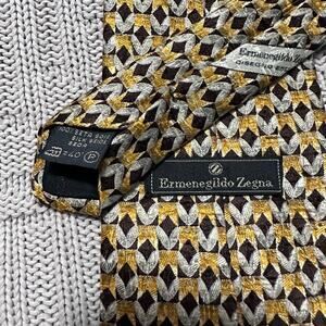 Ermenegildo Zegna silver and gold metallic geometric silk tie. Previously loved and in excellent condition. Non smoking and pet free house.