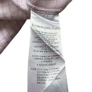 Ermenegildo Zegna Premium button front shirt, light pink check, collared, long sleeve, 100% cotton, neck size 41 / 16, Zegna size 52 or US slim fit large, pit to pit: 21", length: 29", preowned and has stains on the front, collar lining and sleeve - see photos