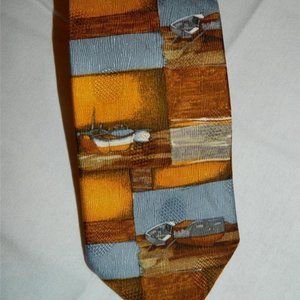 Ermenegildo Zegna:MENS LUXURY 100% Silk Neck Tie Brown & Gold Ship Theme Italy