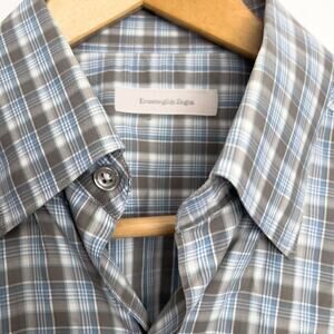 Ermenegildo Zenga Plaid Button Down Dress Shirt Medium Black Gray Work Office