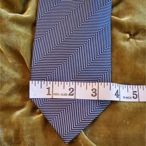 Ermenegildo Zegna mens silk necktie. Striped pattern is made of alternating weave of light and dark blue. 100% silk, made in Italy.