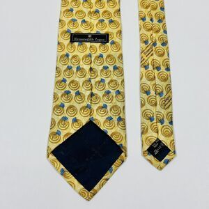 Ermenegildo zegna Silk Tie Necktie Gold With Blue Dandelion Italy