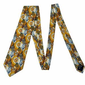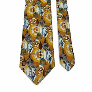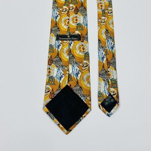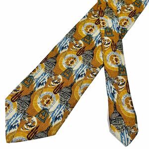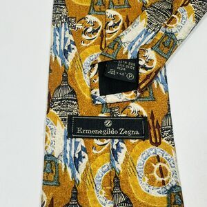 Ermenegildo zegna Silk Tie Necktie Gold With Monument Bell Novelty Print Italy