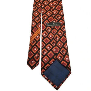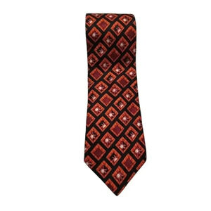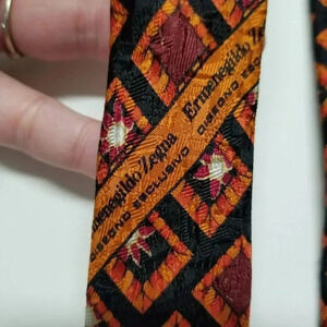 GUC: Awesome Men's Tie by Ermenegildo Zegna. Square Shapes with Flowers. Exclusive Design. Colors: Orange/Red/Black. 100% Silk. In great pre-loved condition. Retail Price $195. Location: AC-0722