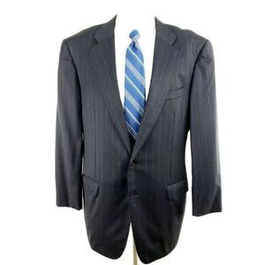 Ermenegildo Zegna 44L 2 Button Super 100s Wool Striped Gray Blazer