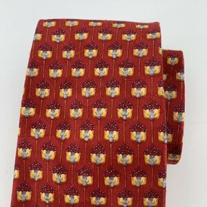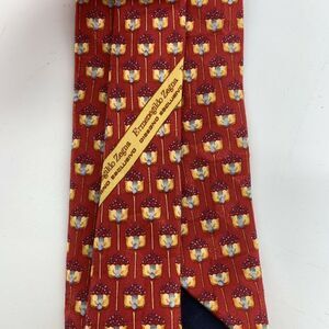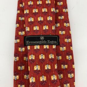 Ermenegildo Zegna Red Floral Print 100% Silk Mens Classic Width Necktie Tie