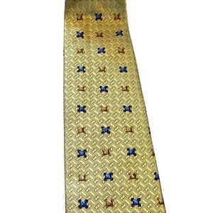Elevate your style with this stunning Ermenegildo Zegna silk tie, featuring a sophisticated geometric square pattern in rich shades of gold, blue, and orange. Crafted from luxurious 100% silk, this designer tie offers a sleek, polished look perfect for business, formal events, and upscale occasions.