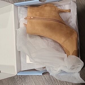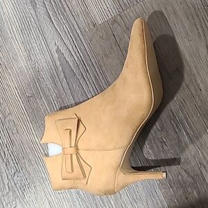 Ermonn Pointed Toe Ankle Boots Stiletto Heels Side Zipper Bow Faux Suede Boots