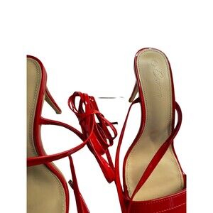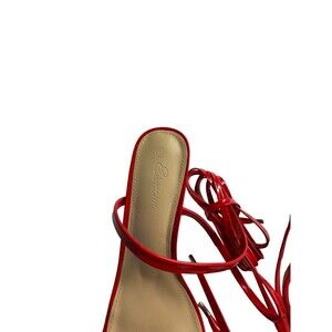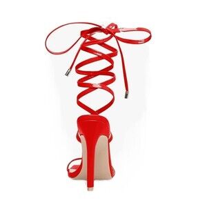 Ermonn Womens Strappy Lace Up Square Open Toe Stiletto Heeled Sandals Red Sz 10