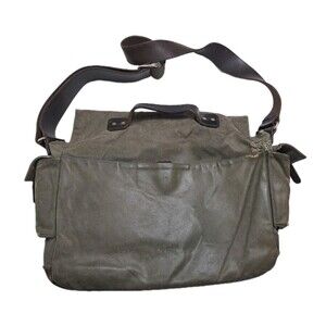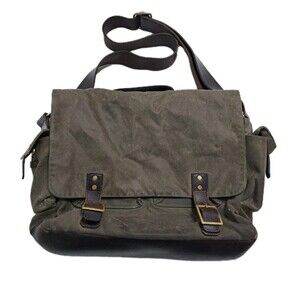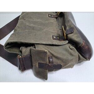 Ernest Alexander Messenger Bag Green Waxed Canvas Brown Leather Distressed NY