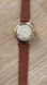 Description: Super rare late mechanical winding designer watch. Truly a work of art! Gold plated case. Mesmerizing white dial with red markers. Clear case back to see inner workings. New brown genuine leather strap. Winds up and ticks as it should. Just cleaned and serviced.