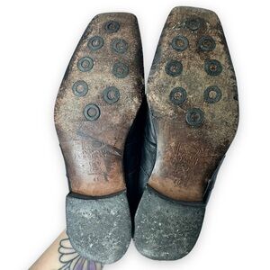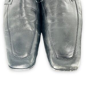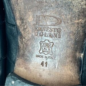 Good condition, see photo for sole wear. Well made, high quality, designer. Black leather. Elastic trim around heel. Elastic panel on top/side of shoe. Emobsed DOLANI on outside of the shoe. Made in Italy.