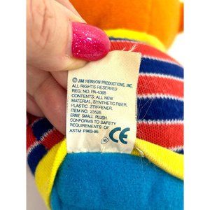 0073B- Ernie Sesame Street Plush Toy 9” Applause, 1990s Muppets, Jim Henson Productions, 8” with arms outstretched. “Everyone loves to get applause.” Made in the Philippines. Do not immerse in water. Use cloth with warm water and mild detergent. Air dry. All new material, synthetic fiber, plastic stiffener. Very good condition. Gently preowned.