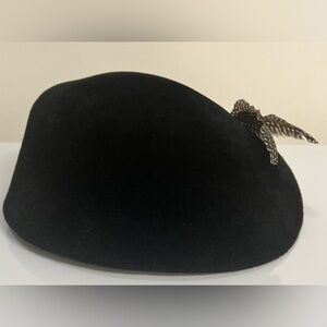 Vintage Ernie Unisex black velvet hat with side feathers. Excellent condition. Unique