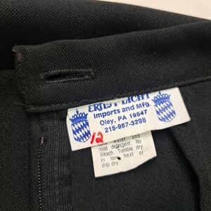 The Ernst Licht Black Floral Embroidery Skirt in size 12 is a vintage piece that exudes feminine elegance. This A-line skirt features a midi length and is made of polyester material, offering a comfortable and stylish fit for women. The black color and floral pattern add a touch of sophistication to any outfit, making it a versatile piece for any wardrobe. Perfect for those who appreciate classic and timeless fashion choices.