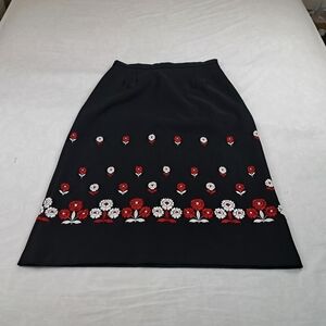 Ernst Licht Black Floral Embroidery Skirt Size 12 Vintage