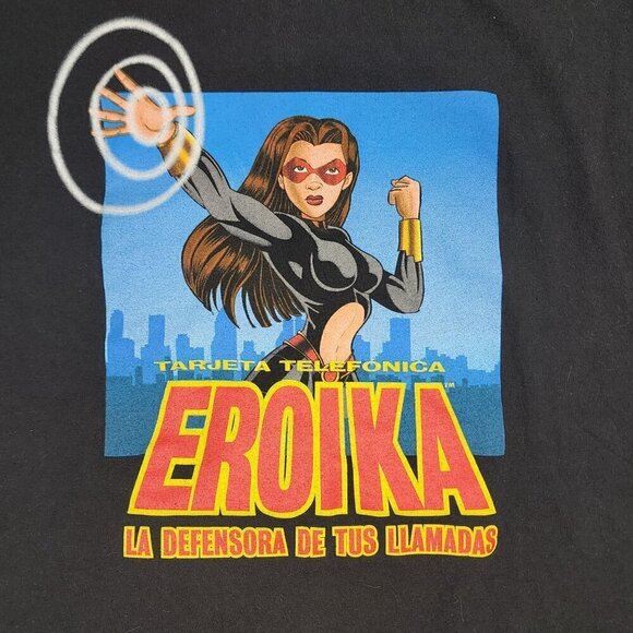 • Eroika Tarjeta Telefonica official merch, 100% Cotton Black tee, Measurements in images