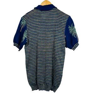 Erotokritos Metallic Silk Knit Top Short Sleeve Palm Tree Sweater Stripe - 1