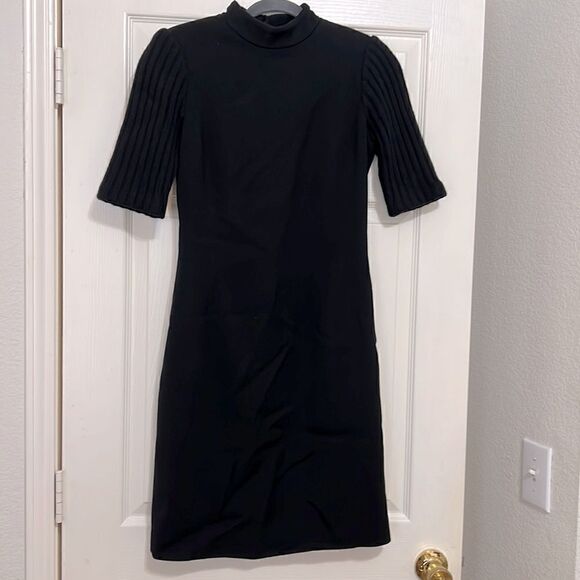 Sleeves are a banded knit and the body of the dress is a smooth knit.
