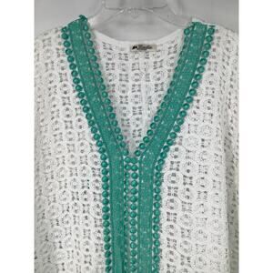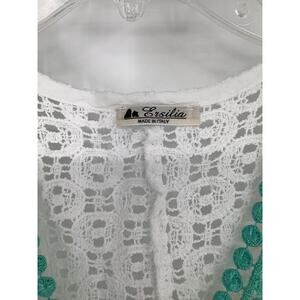 Ersilia Womens White Green Crochet Swim Cover Up Beach Boho Chic Italy H23-8