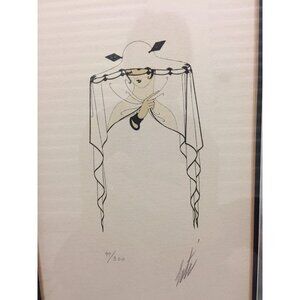 Erte "LaBelle Big Brim Hat With Lace Veil" Silkscreen 99/300 Signed In Pencil