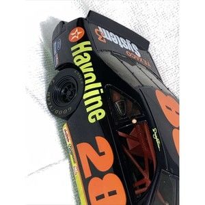 This Ertl diecast model of Davey Allison #28 Havoline Thunderbird Diecast NASCAR racecar is a great addition to any fan's collection. The 1:18 scale model features a orange and black color scheme with the Havoline and Texaco Logos. The steering wheel even works, adding to its display value. Observe the photos with the steering wheel. This detailed piece would also look nice sitting on a desk in a parts store for customers to look at while they order parts. Observe the photos, the condition is very good. Well taken care of, spent most of its life in an acrylic case.