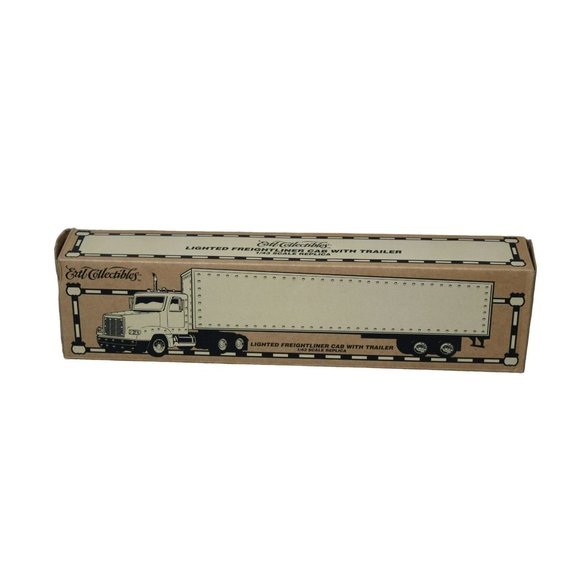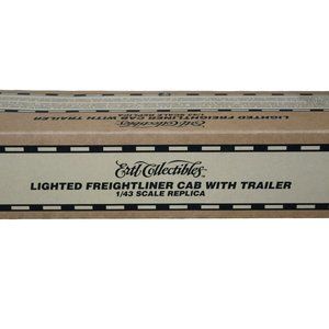 Ertl Collectables presents a remarkably detailed Lighted Freightliner Cab with Trailer. This collectable is brand new in box and features realistic lighting. Perfect for collectors or model vehicle enthusiasts.