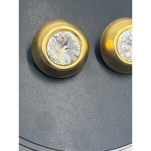 Erwin Pearl Large Gold Tone Round Bezel Set Sparkling Rhinestone Clip Earrings . These large round earrings feature a beautiful bold rhinestone in the center. Add a touch of vintage glamour to your outfit with these stunning gold tone clip-on earrings by Erwin Pearl.