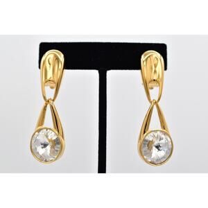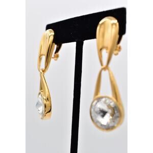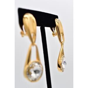 Erwin Pearl Vintage Crystal Clip On Earrings Gold Dangle PEP Signed 1980s BinA28