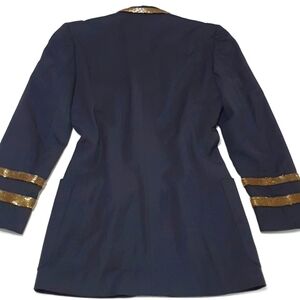 Features: beaded neckline and cuffs, 2 front pockets, one gold button