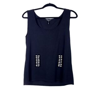 Escada 2 pc detailed tank black sweater set wool blend sz 40 like new condition