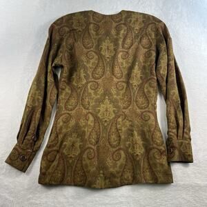 Escada 34 US S Top Blouse Gold Paisley Wool Silk Shirt Margaretha Ley Designer