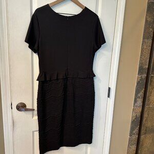 Escada | 44 XL Black Peplum Short Sleeve Pencil Dress Mod Career Stretch Viscose