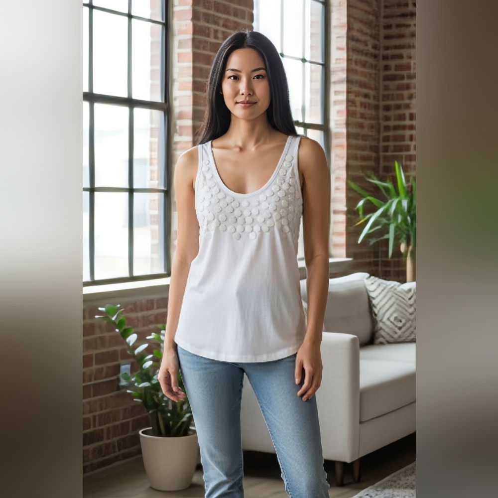Chic and stylish white tank top with elegant embellishments. Perfect for any occasion.