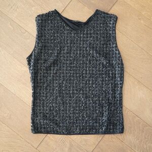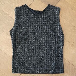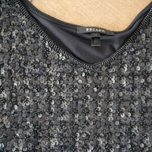 Escada Black Sequin V-Neck Top Size Medium Classic