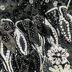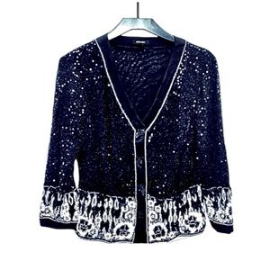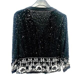 You are viewing a listing for a beautiful black sequins evening jacket by Escada, size 34. Jacket is adorned with mini black bows. The Escada Couture lace skirt sold separately. Excellent condition. Smoke-free environment.