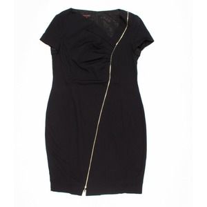 Escada Black Wool Zip Detail Ruched Sheath Dress