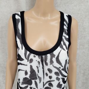 Escada Black and White Abstract Zebra Sleeveless Silk Scoop Neck Blouse