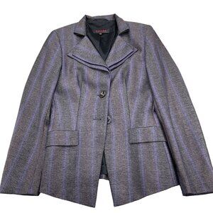 Escada Blazer Women 34 Gray Purple Stripe Herringbone Layer Collar Classic